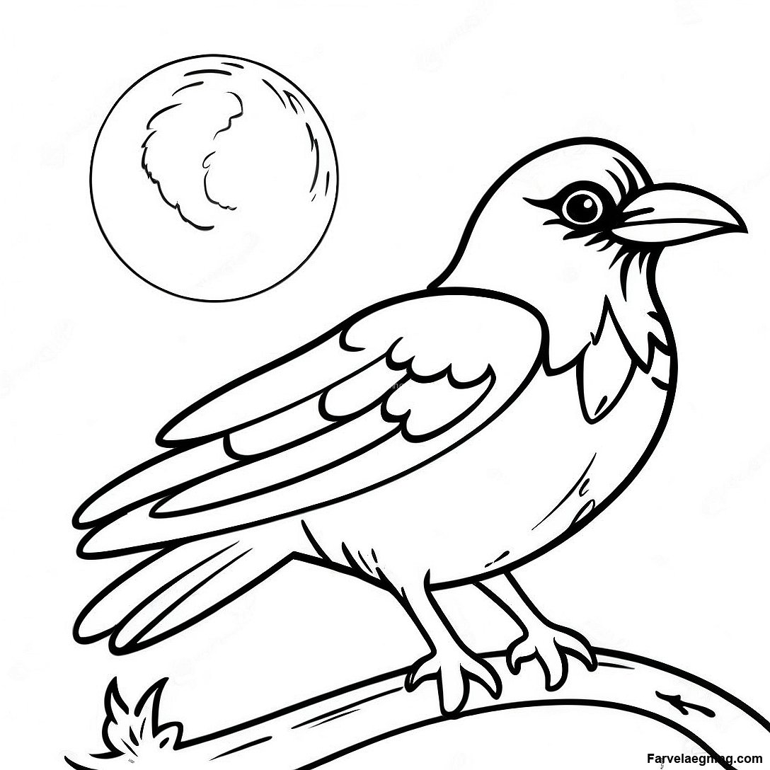 Download printbar PDF af Mystisk Ravn Med Måne Farvelægningssiden