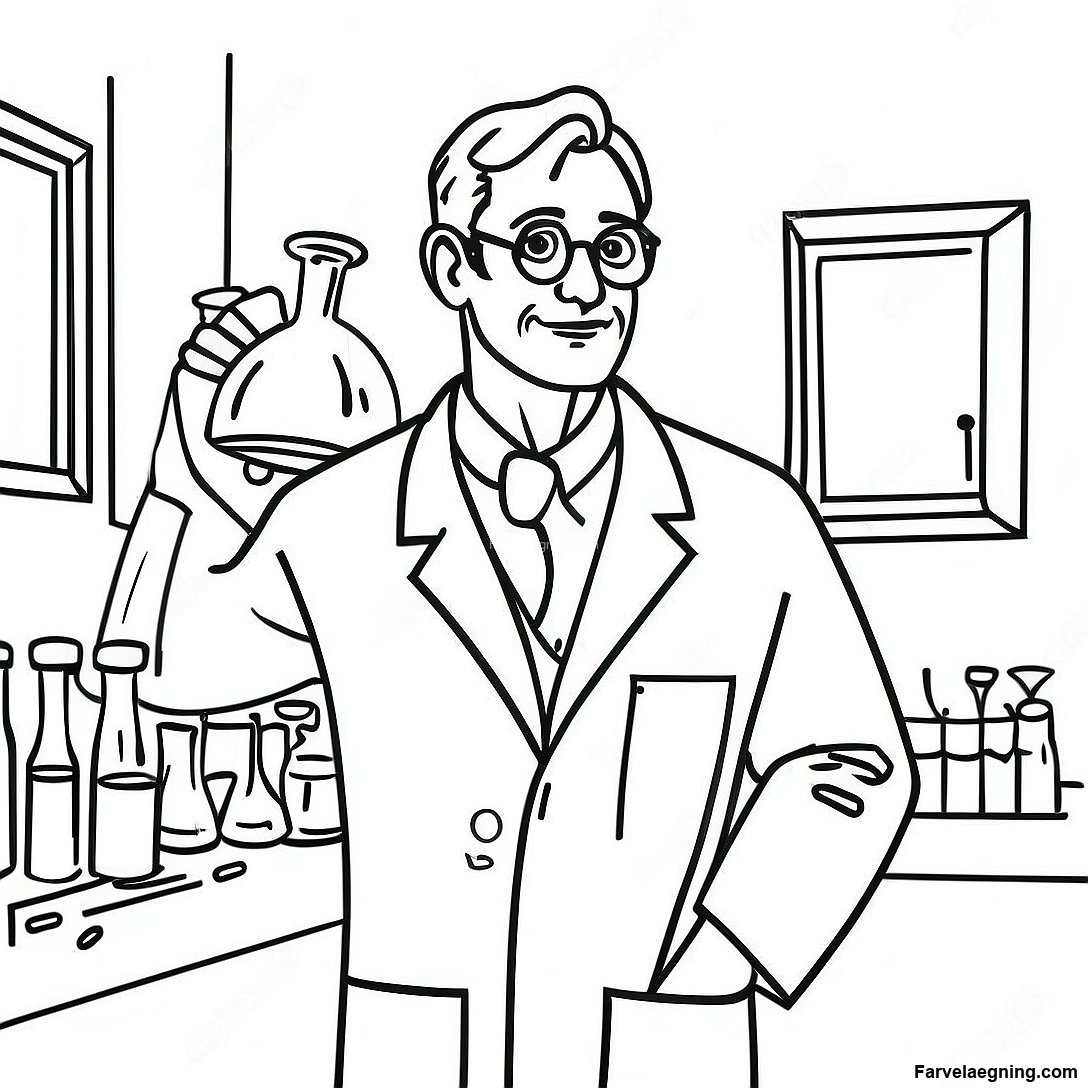 Nysgerrig Scientist I Laboratoriekittel Farvelægningsside