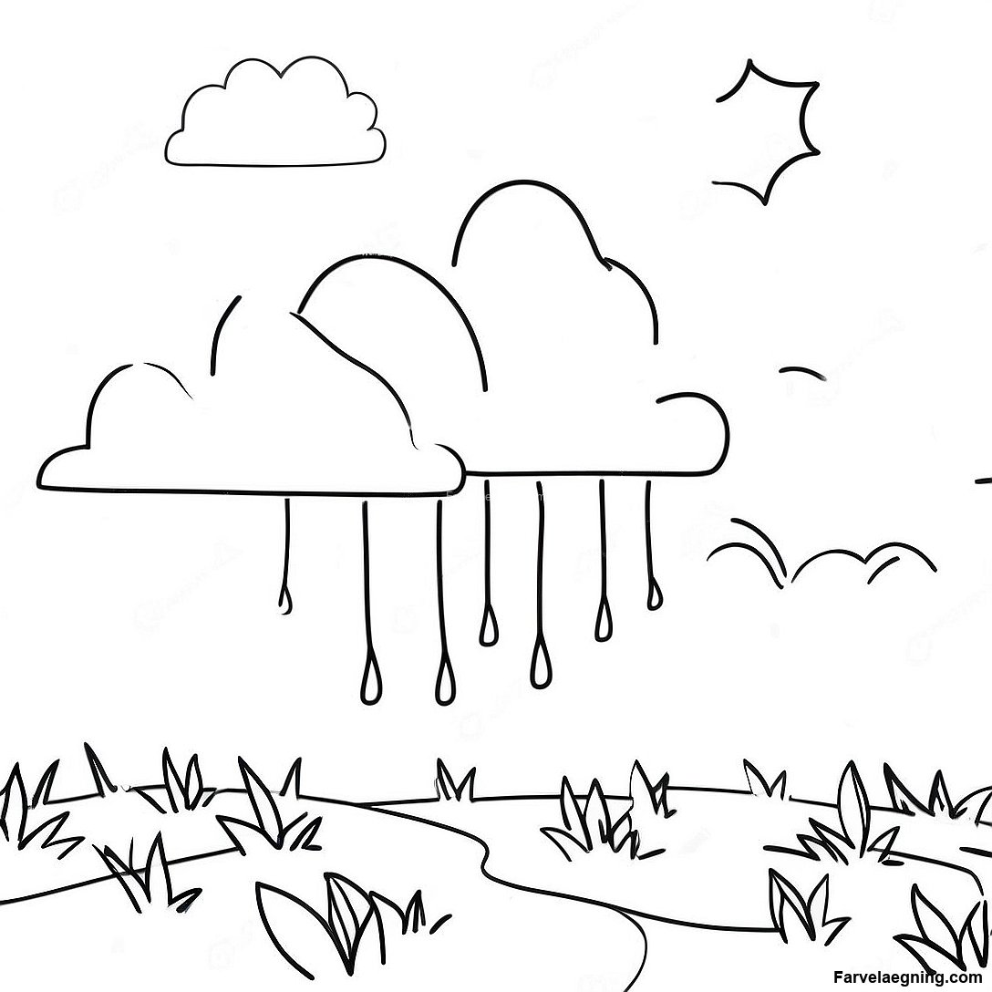 Overskyet Himmel Med Regn Farvelaegningsside 97622 36599