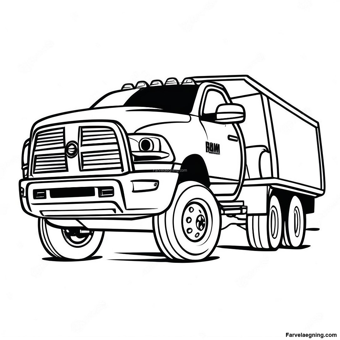 Download printbar PDF af Ram Truck Trækker En Trailer Farvelægningsside