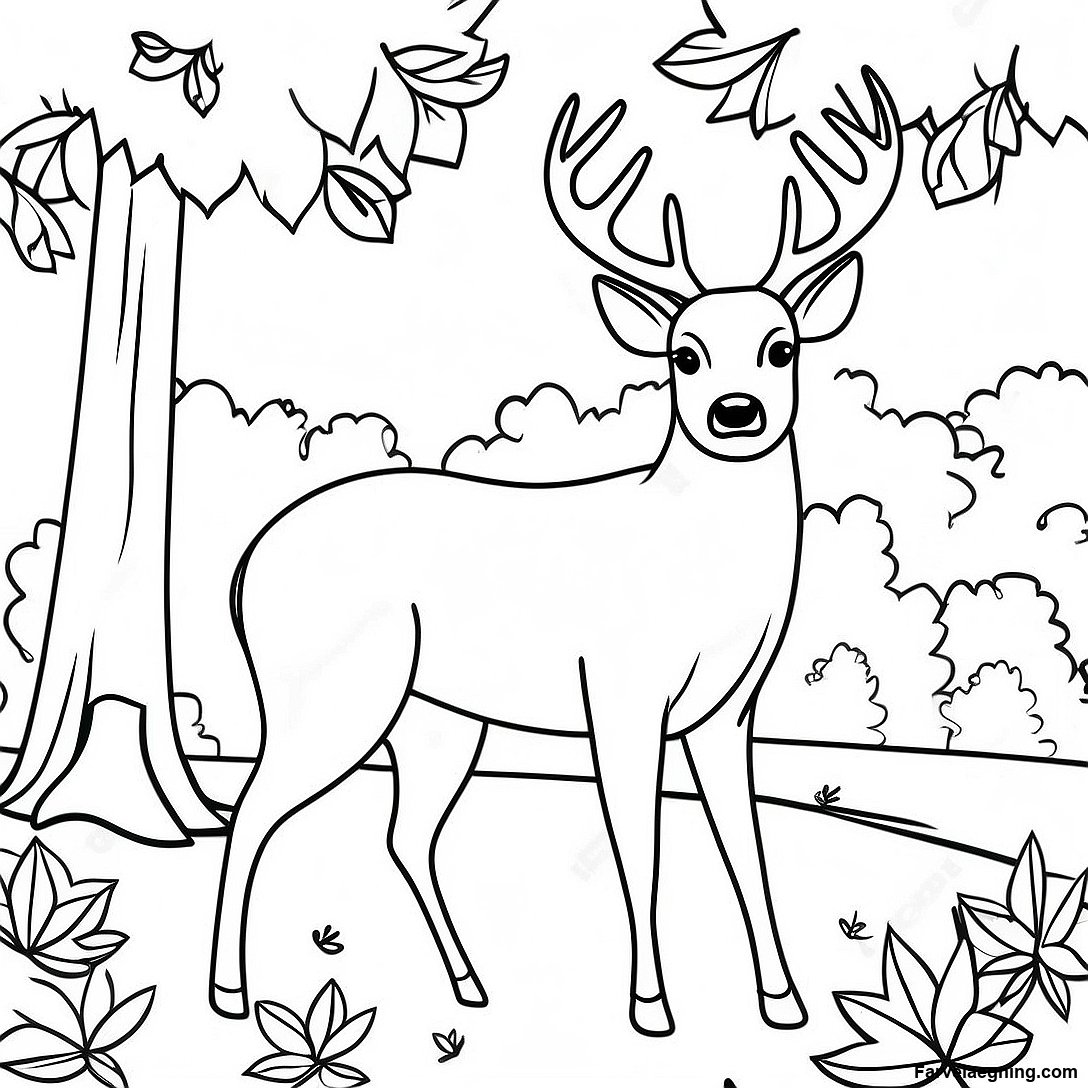Realistisk Hjort I Efterarsblade Farvelaegningsside