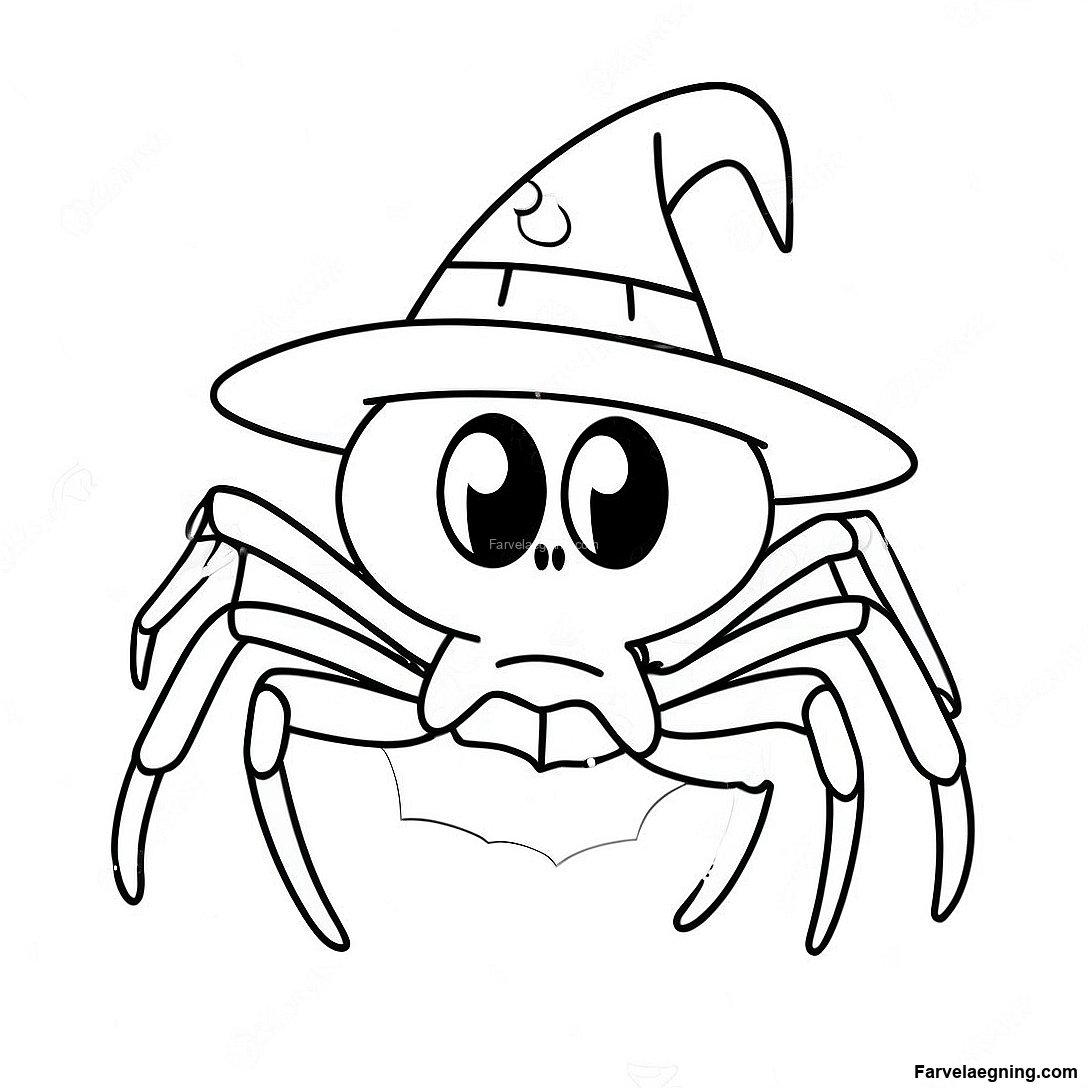 Sjov Halloween Edderkop Med Hat Farvelaegningsside