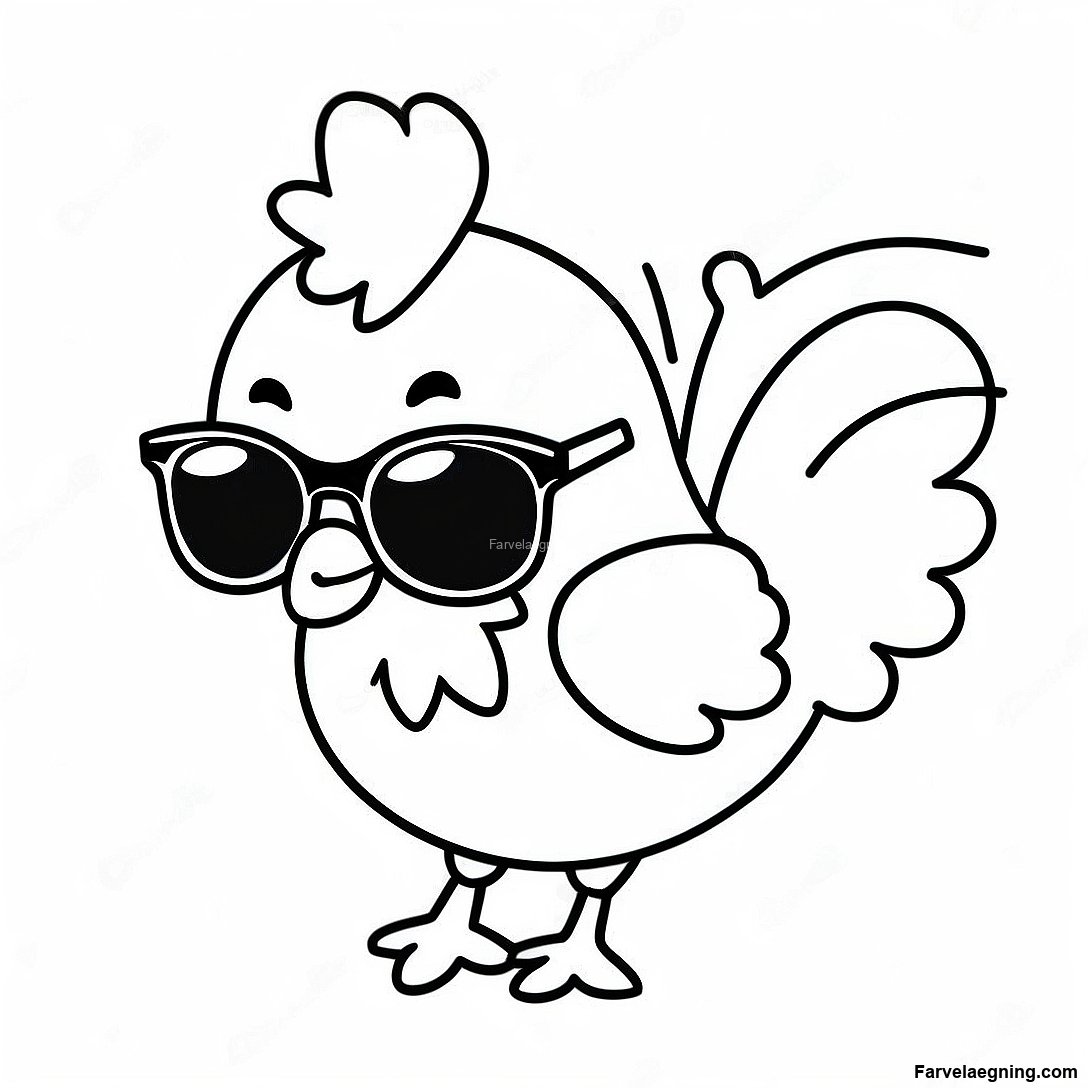 Download printbar PDF af Sjov Kylling Med Solbriller Farvelægningsside