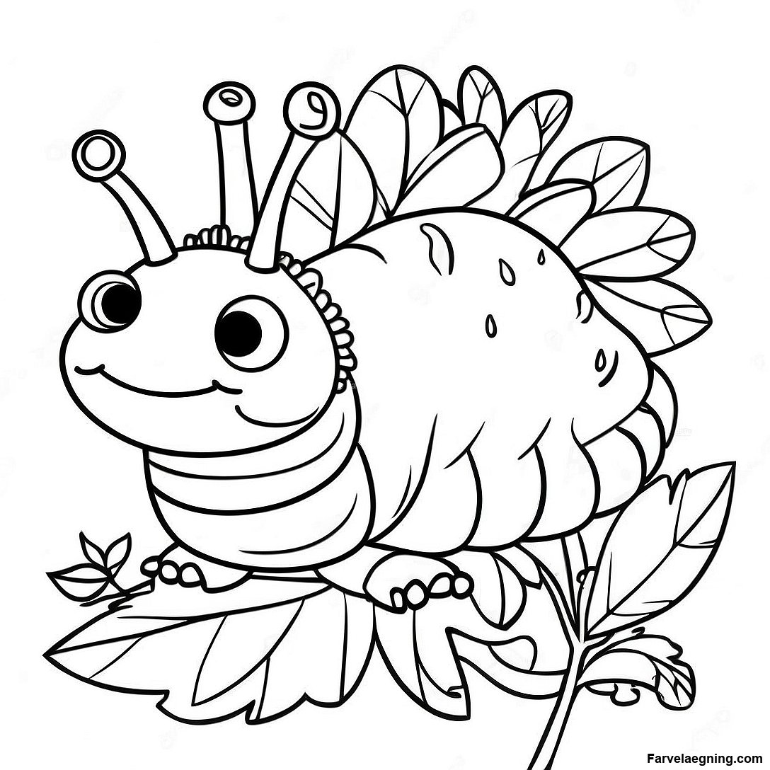 Download printbar PDF af Sjov Larve På Et Blad Farvelægningsside
