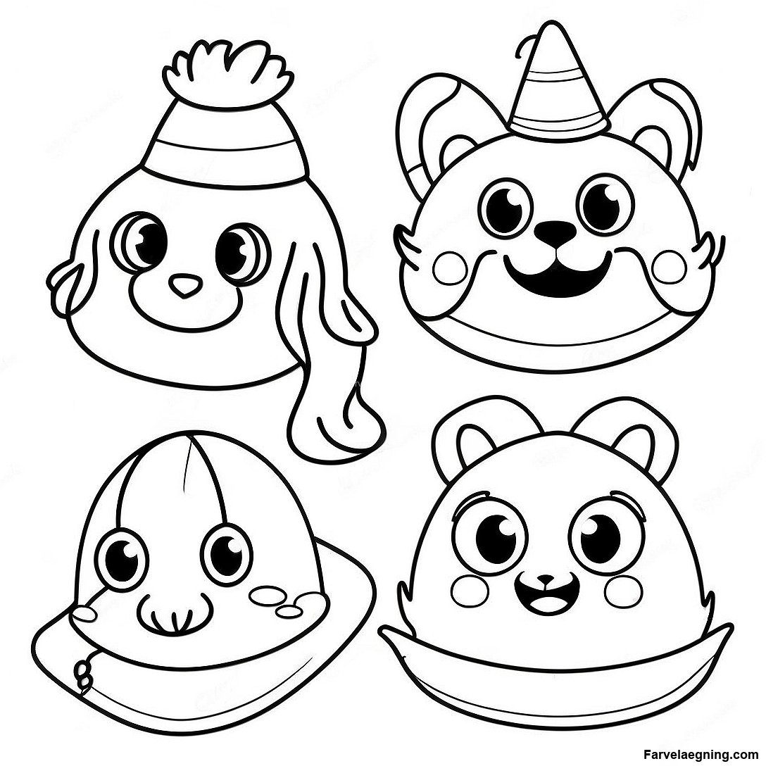 Download printbar PDF af Sjove Dyrehatte Farvelægningssiden