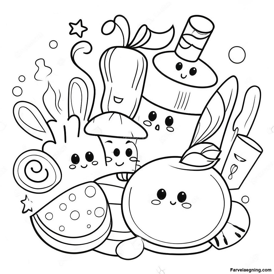 Stort Hjerte med Søde Dyr Farvelægningsside
