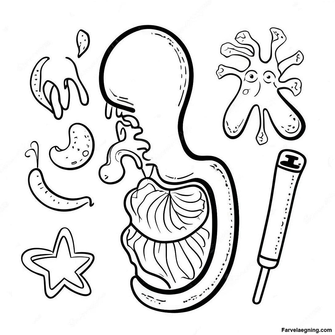 Download printbar PDF af Sjovt Fordøjelsessystem Farvelægningsside