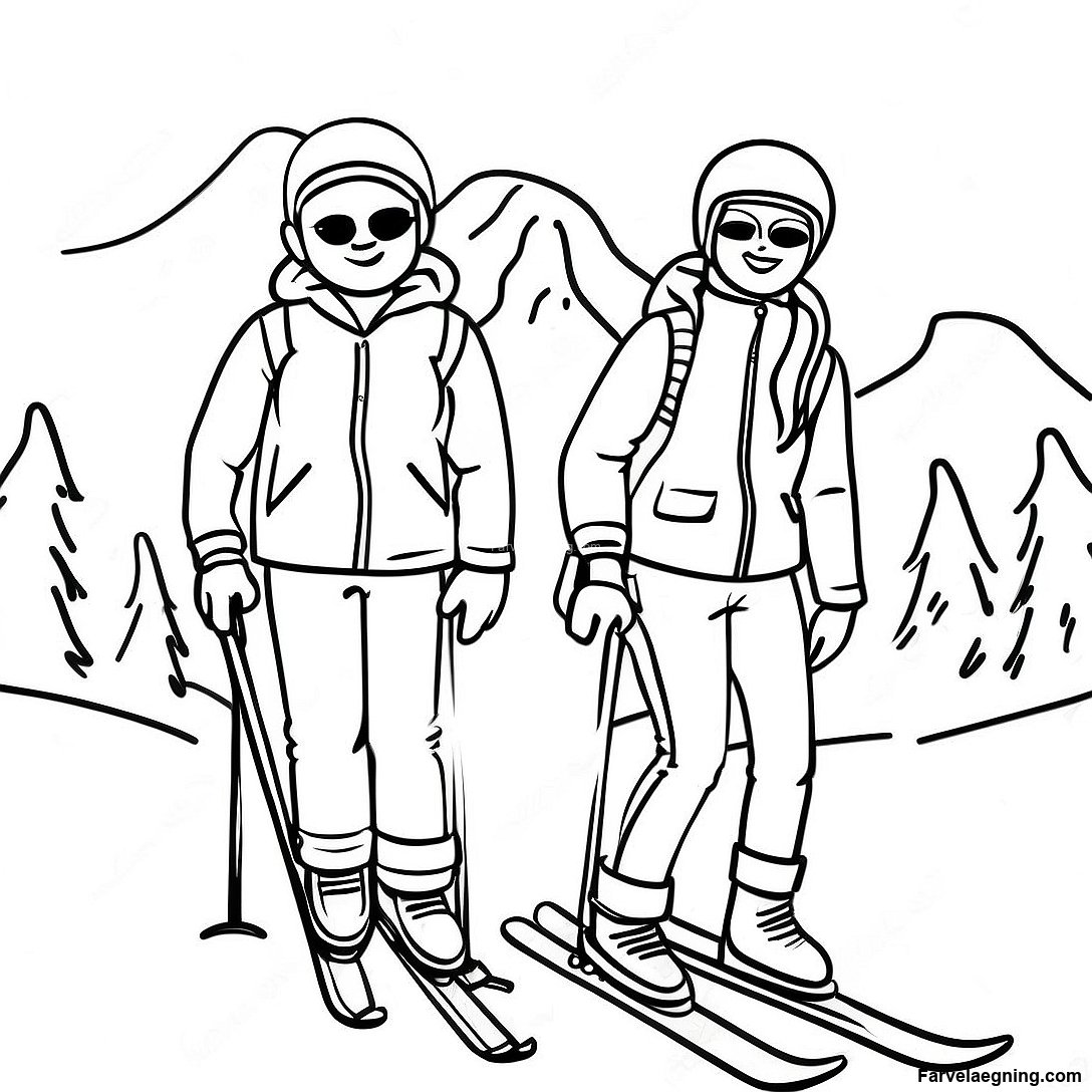 Download printbar PDF af Skiing Venner På Pisterne Farvelægningsside