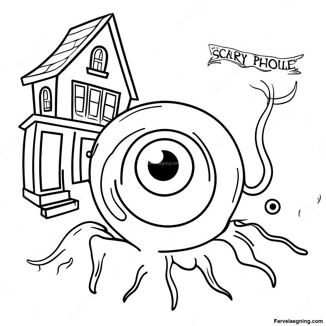 Download printbar PDF af Skræmmende Øje I Et Spøgelseshus Farvelægningsside