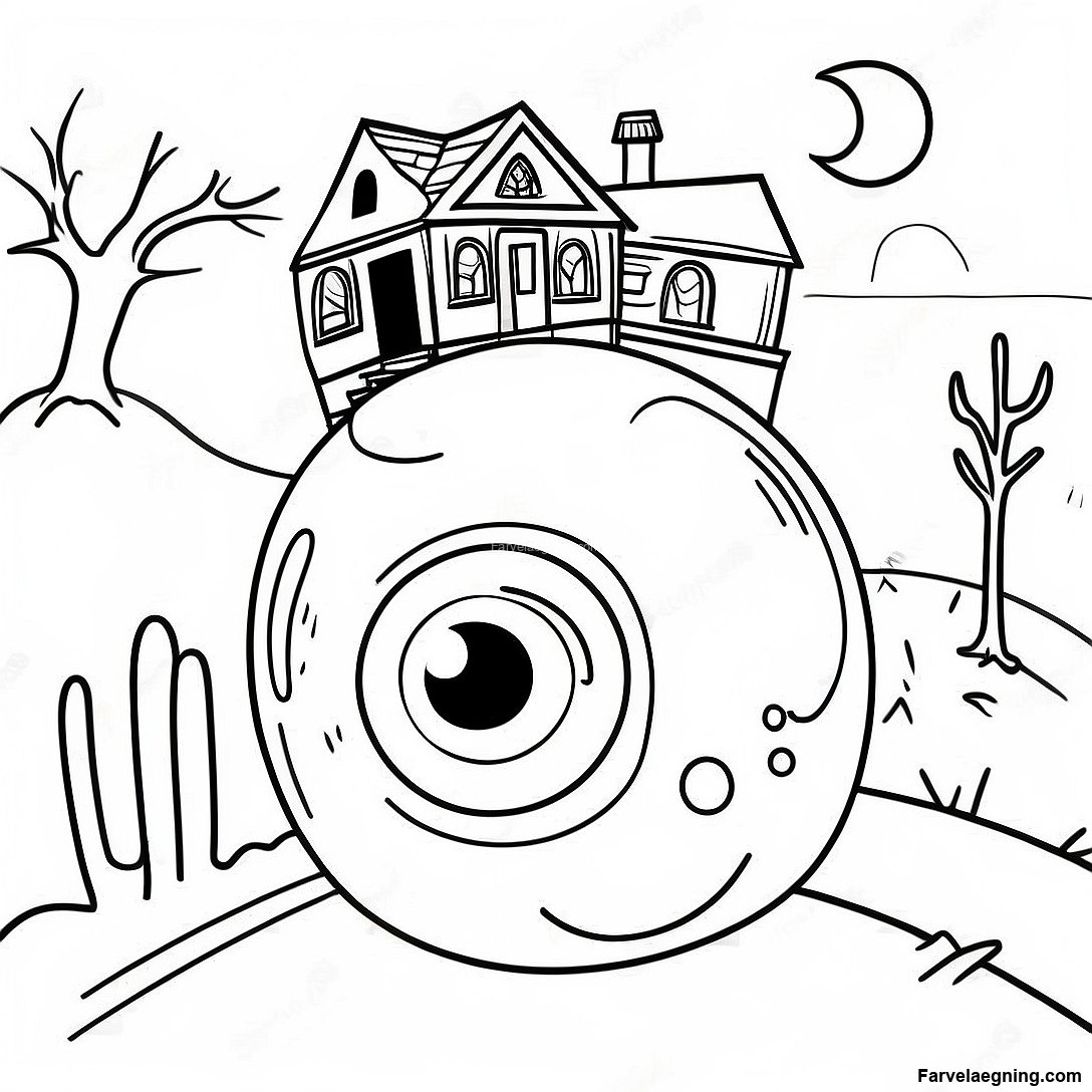 Download printbar PDF af Skræmmende Øje I Et Spøgelseshus Farvelægningsside