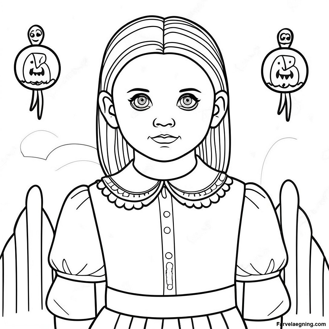 Download printbar PDF af Skræmmende Wednesday Addams Farvelægningsside