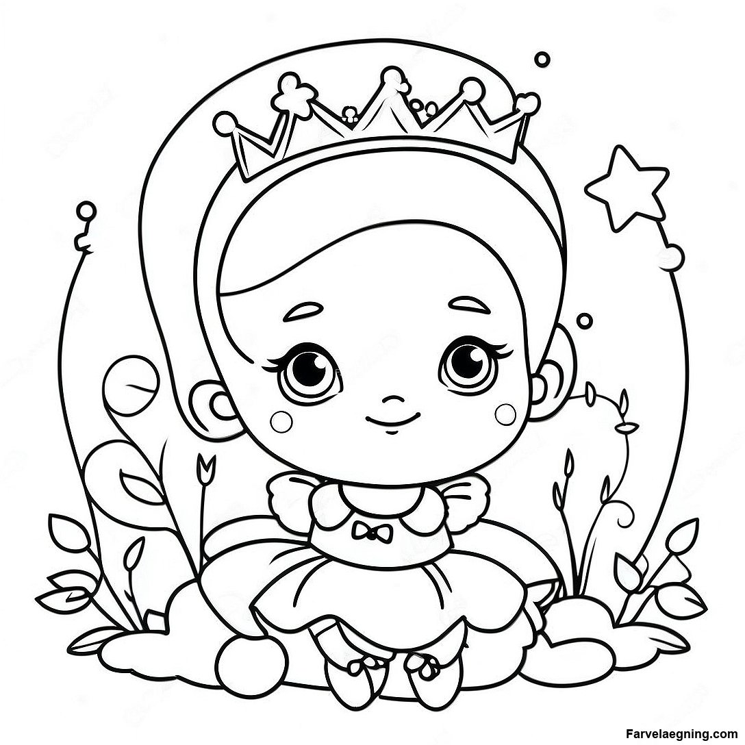 Sød Baby Prinsesse I Et Eventyr Farvelægningsside