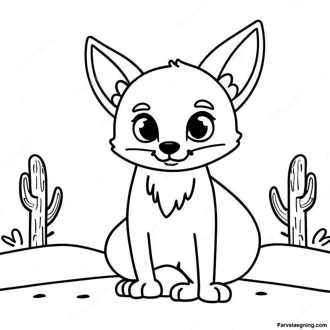 Sød Fennec Ræv I Ørkenen Farvelægningsside