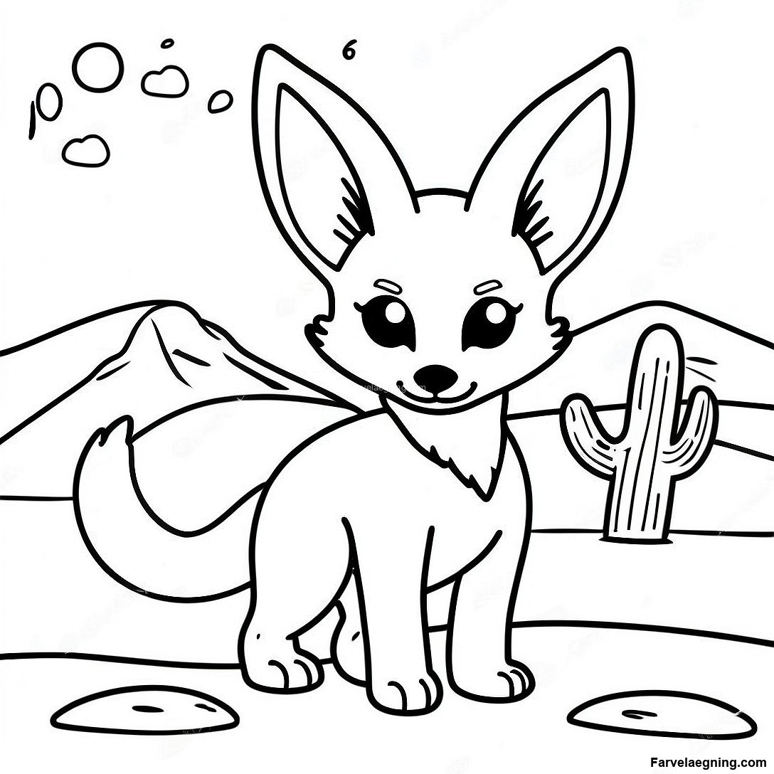 Sød Fennec Ræv I Ørkenen Farvelægningsside