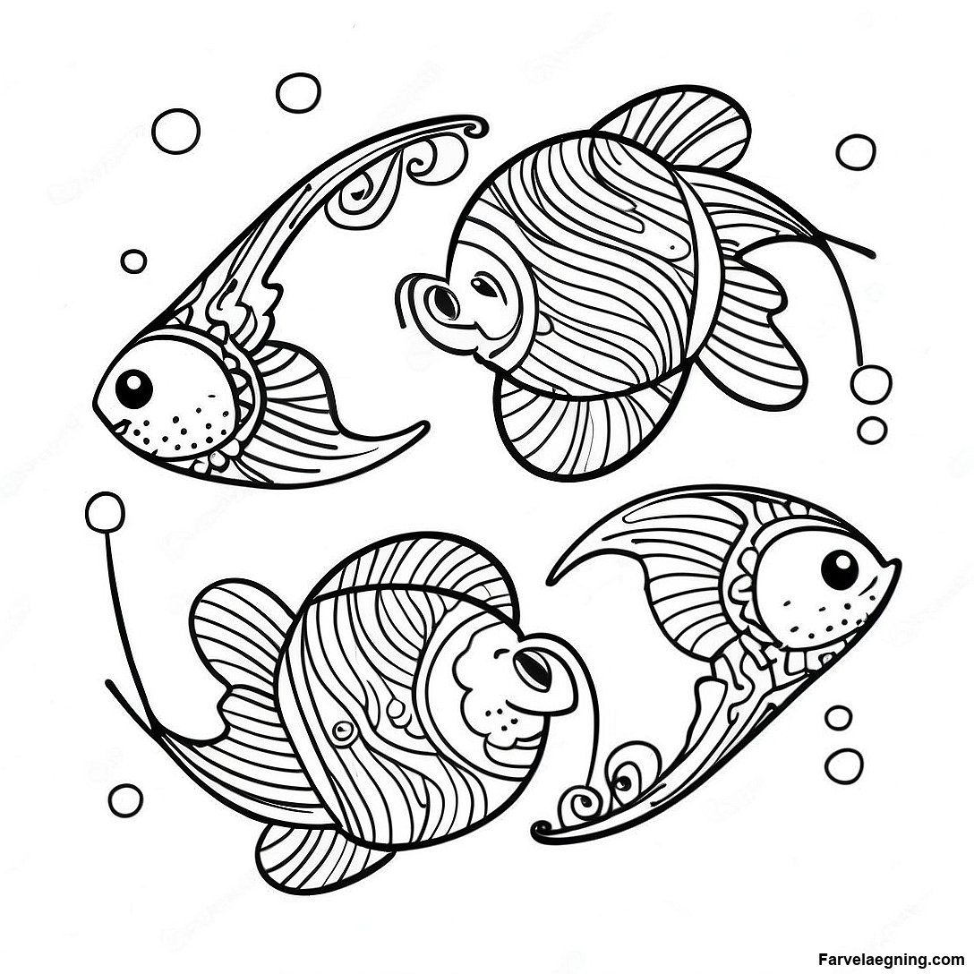 Download printbar PDF af Sød Fisk I Fiskene Farvelægningsside