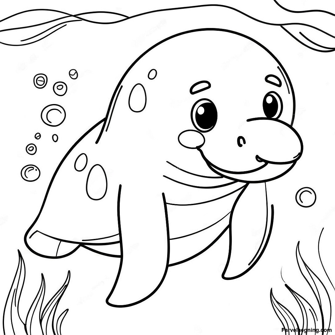 Download printbar PDF af Sød Manatee Svømmer Farvelægningsside
