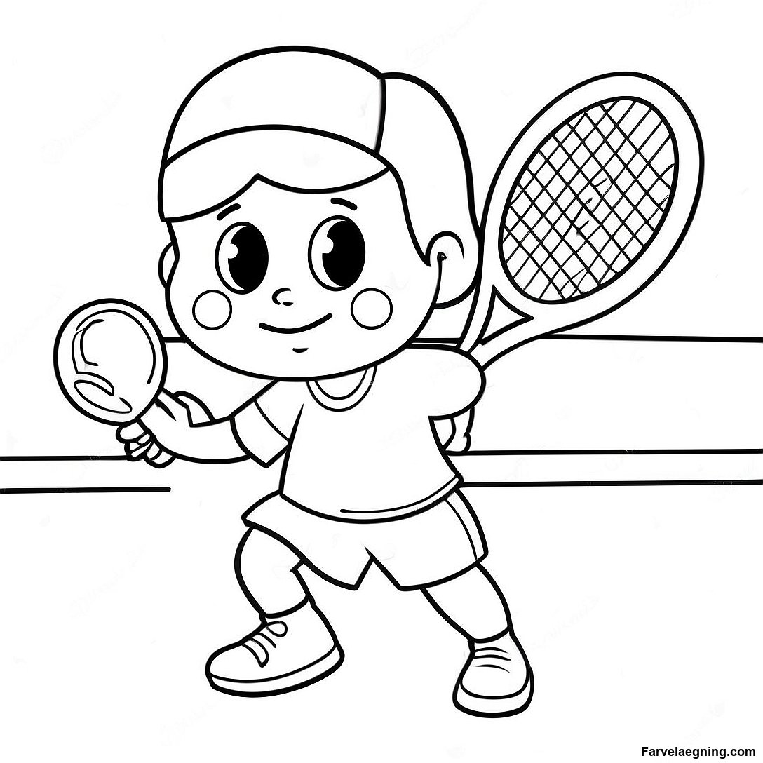Download printbar PDF af Sød Tegneserie Tennis Spiller Farvelægningsside