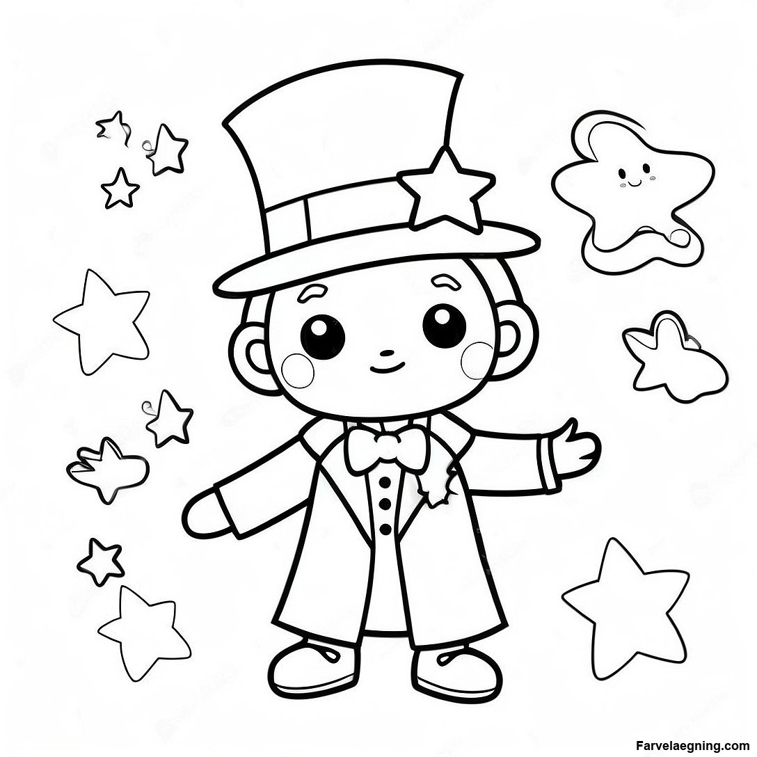 Download printbar PDF af Sød Tryllekunstner Med Stjernehimmel Farvelægningsside