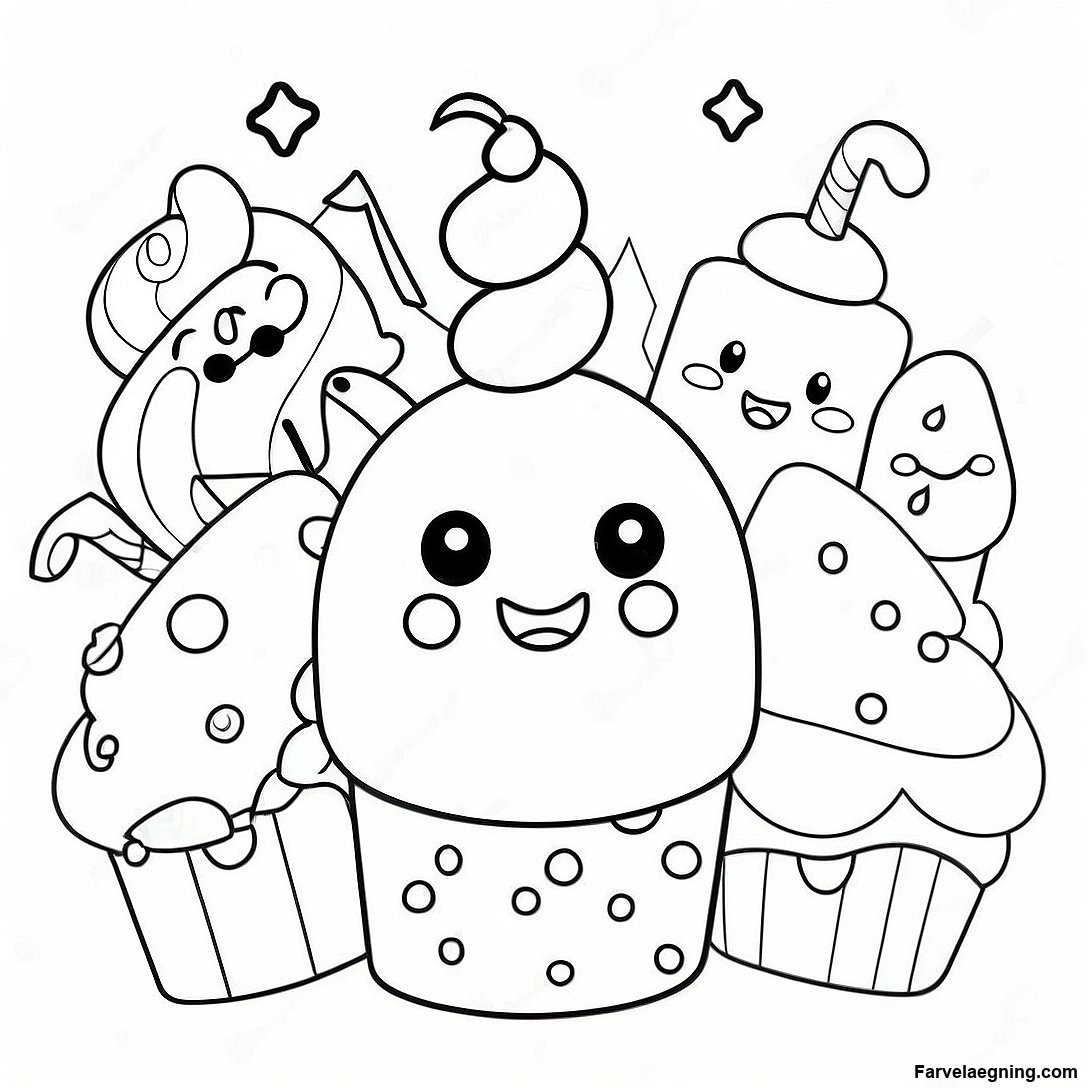 Søde Num Noms Med Cupcakes Farvelægningsside