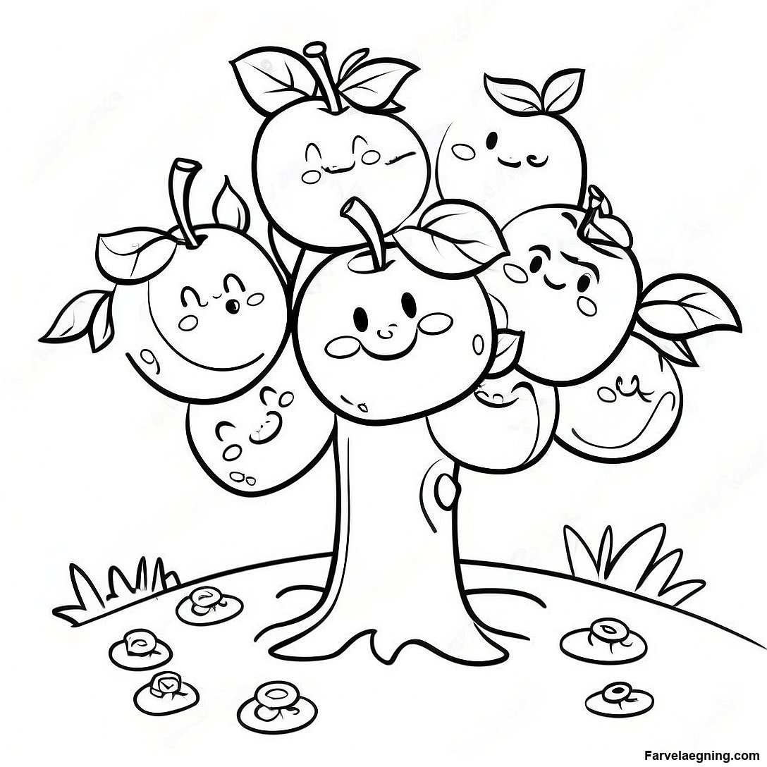 Sodt Aebletrae Med Smilende Aebler Farvelaegningsside