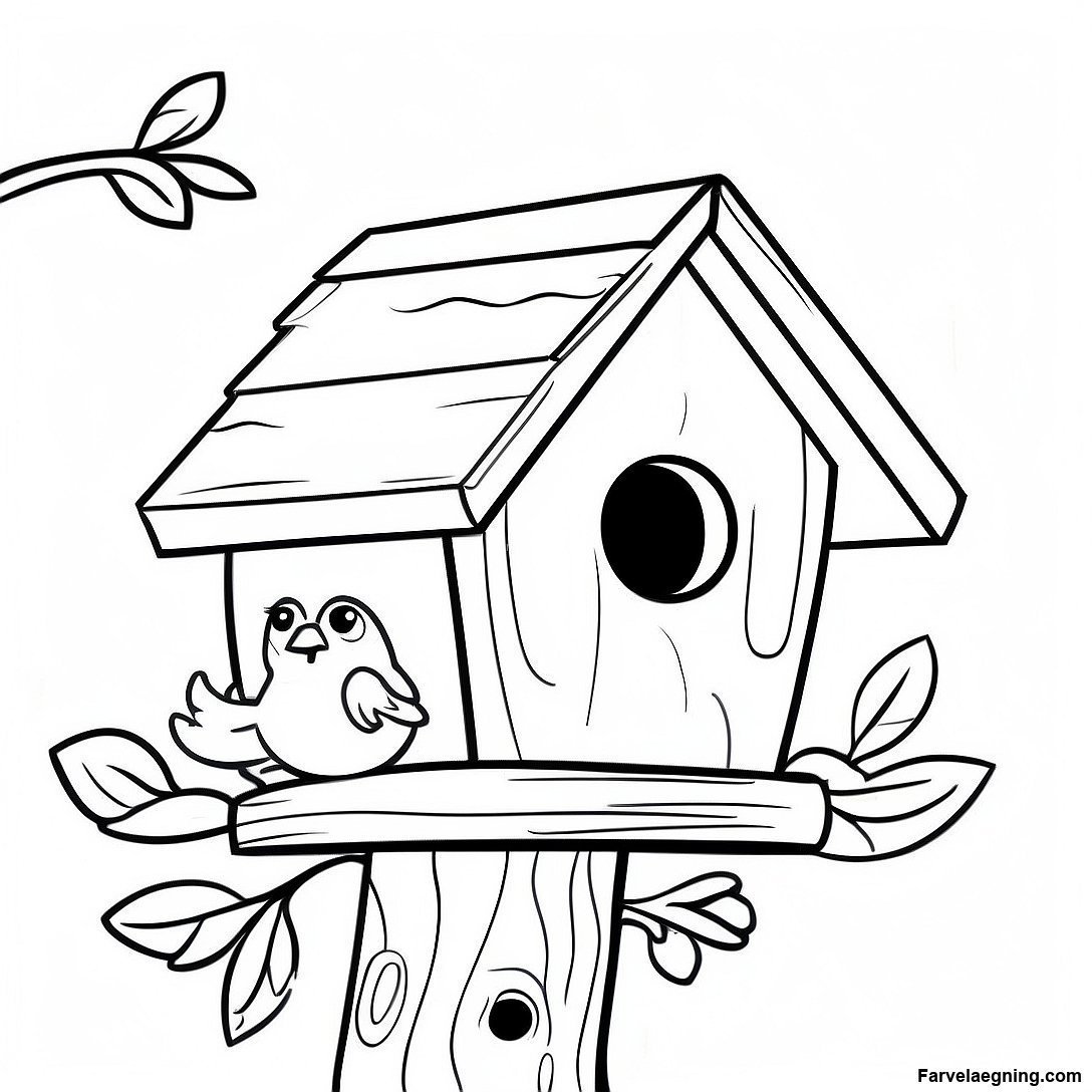 Download printbar PDF af Sødt Fuglehus I Et Træ Farvelægningsside