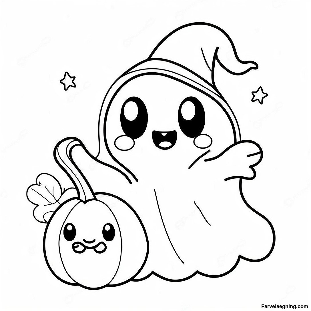 Download printbar PDF af Sødt Spøgelse Med Græskar Farvelægningsside