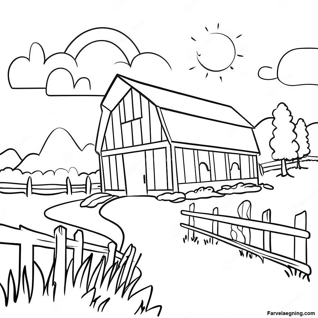 Download printbar PDF af Solrig Lade Landskab Farvelægningsside