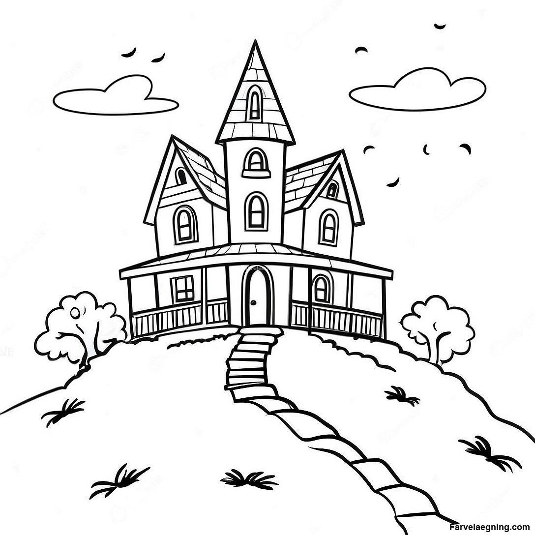 Download printbar PDF af Spøgelseshus På En Bakke Farvelægningsside