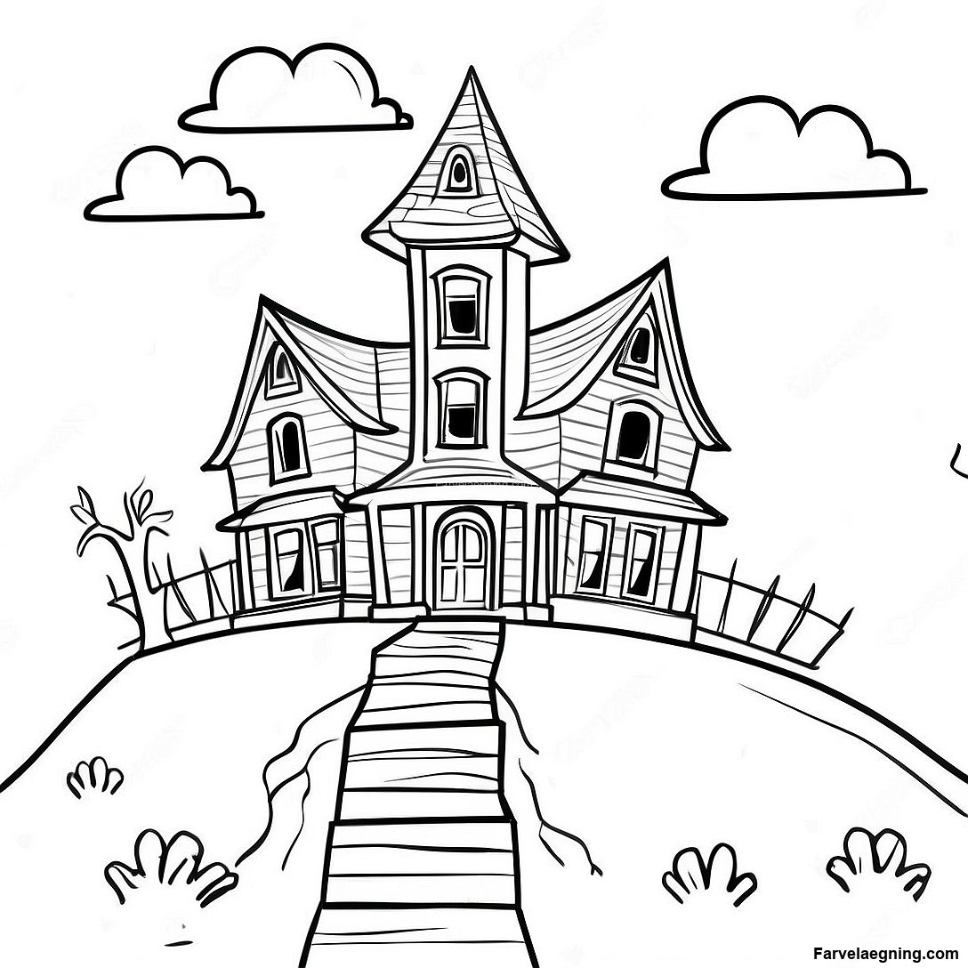 Download printbar PDF af Spøgelseshus På En Bakke Farvelægningsside