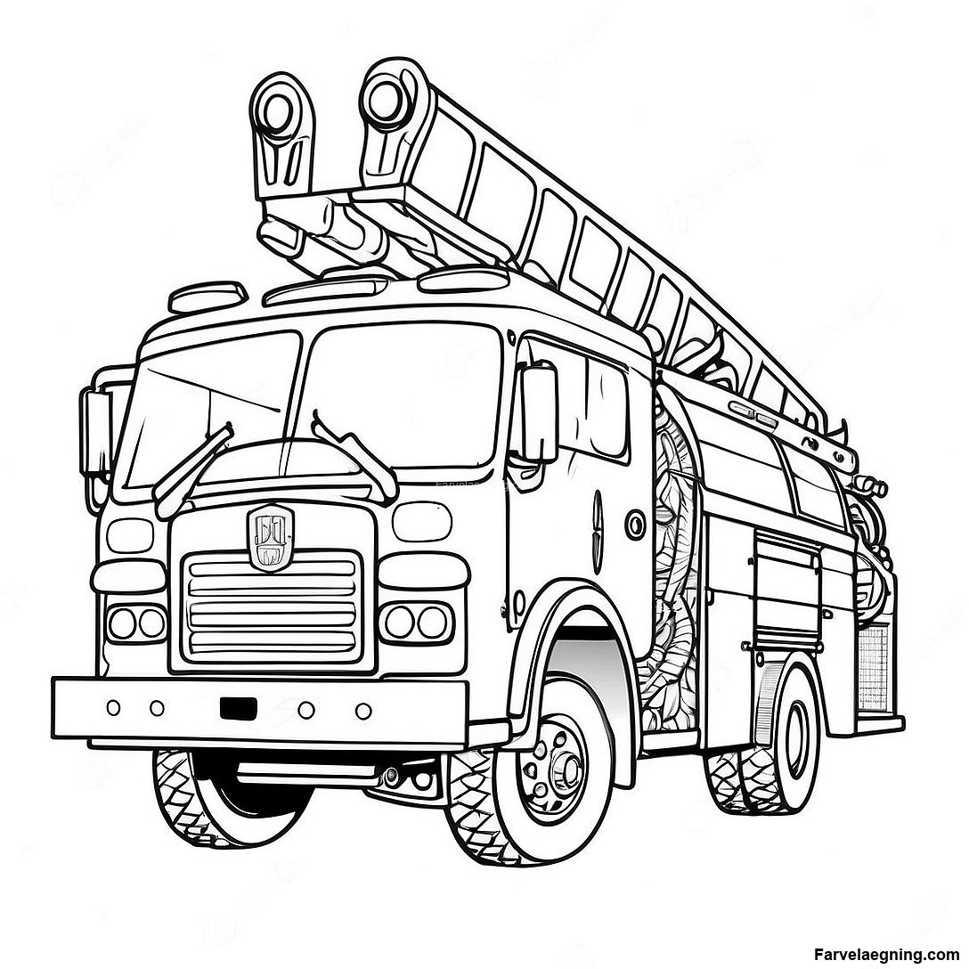 Download printbar PDF af Stor Rød Brandbil Farvelægningsside
