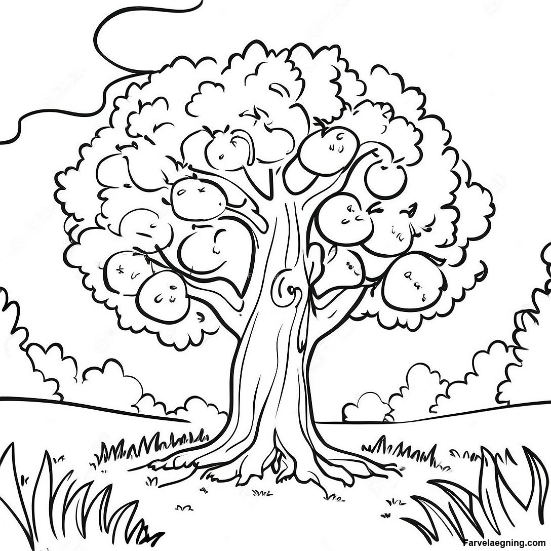 Download printbar PDF af Stort Æbletræ I En Solrig Mark Farvelægningsside