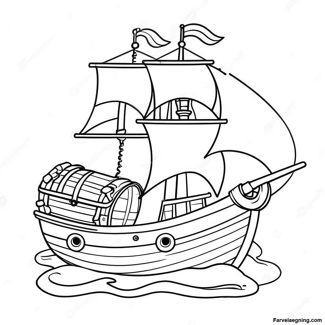 Tegneserie Piratskib Med Skattekiste Farvelaegningssiden 37173 8127
