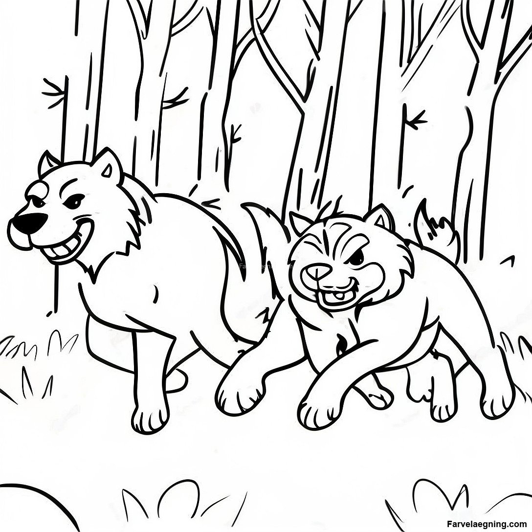 Download printbar PDF af Timberwolves Flok Løber Farvelægningsside