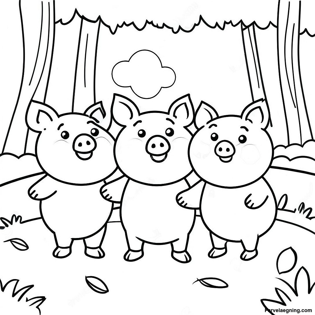 Download printbar PDF af Tre Små Grise I En Skov Farvelægningssiden