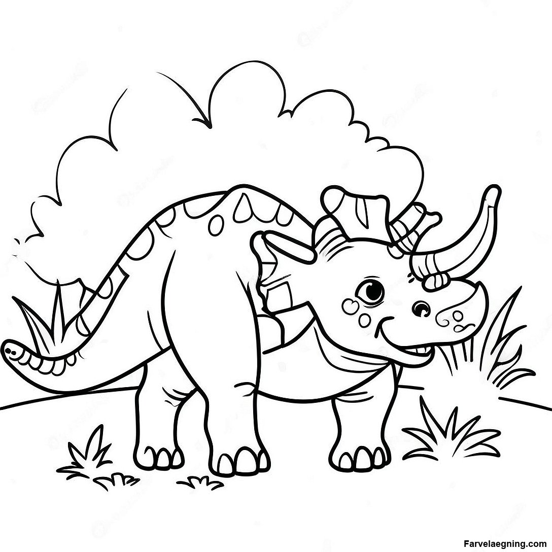 Download printbar PDF af Triceratops Græsser Farvelægningsside