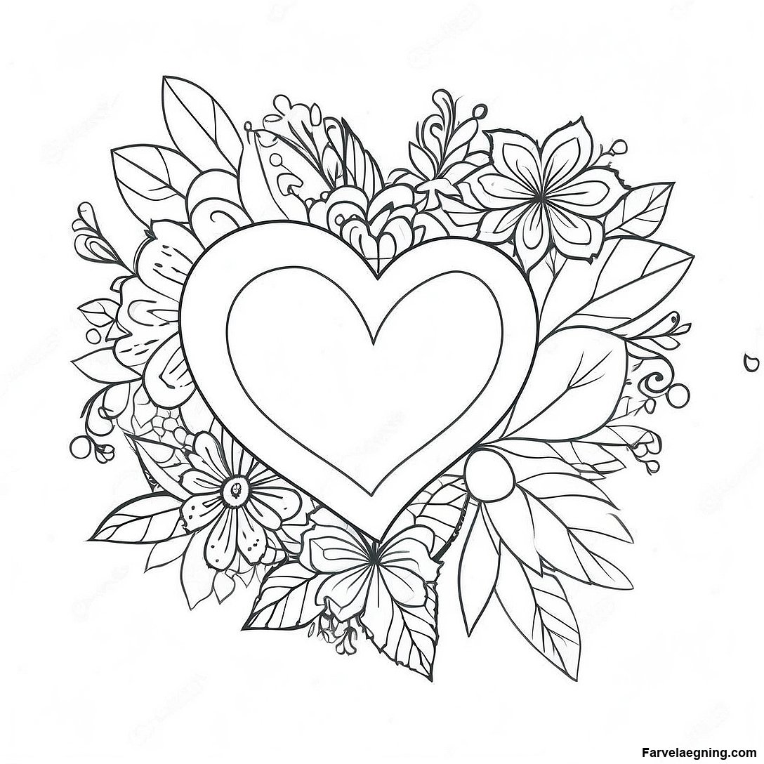 Download printbar PDF af Valentinsdag Hjerte Farvelægningsside