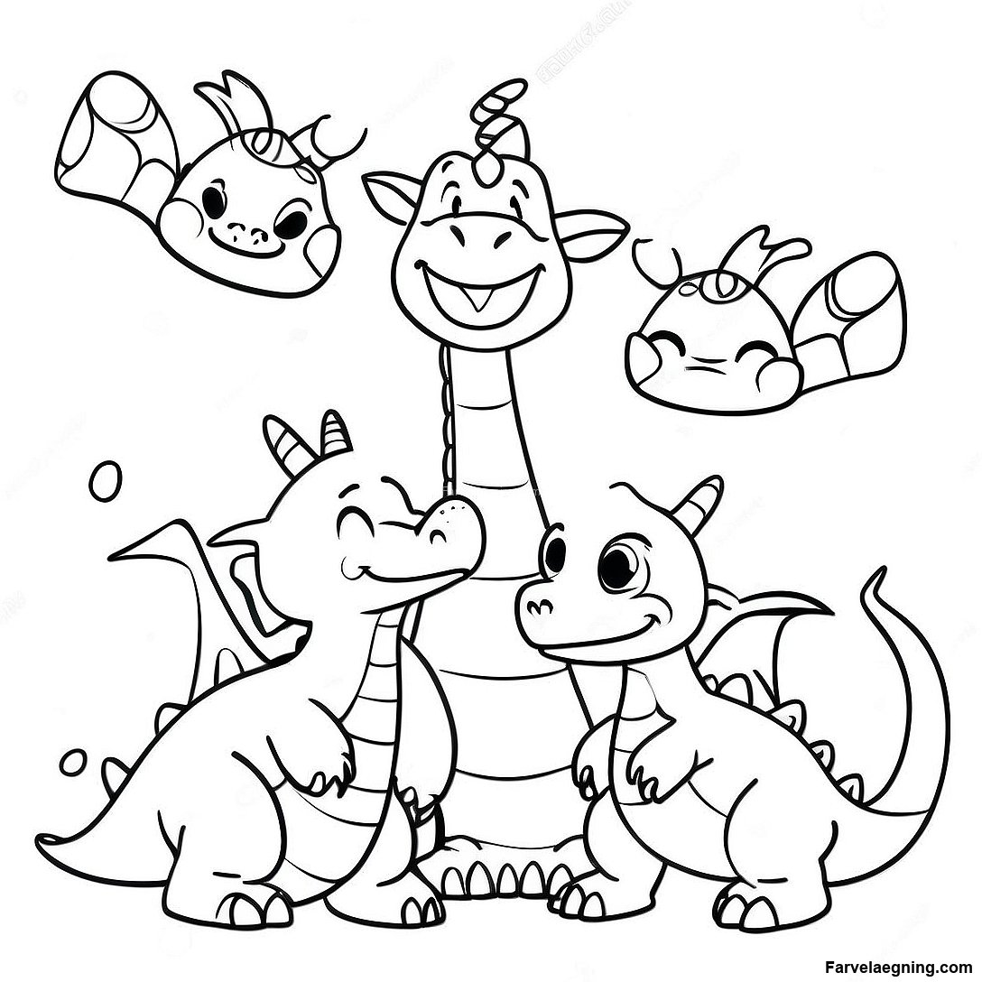 Download printbar PDF af Venlig Drage Med Venner Farvelægningssiden