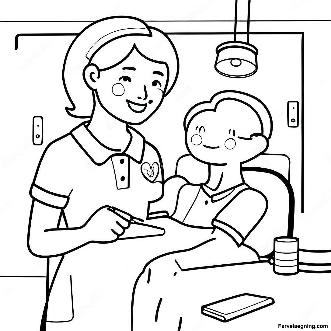 Download printbar PDF af Venlig Sygeplejerske Hjælper Patient Farvelægningssiden