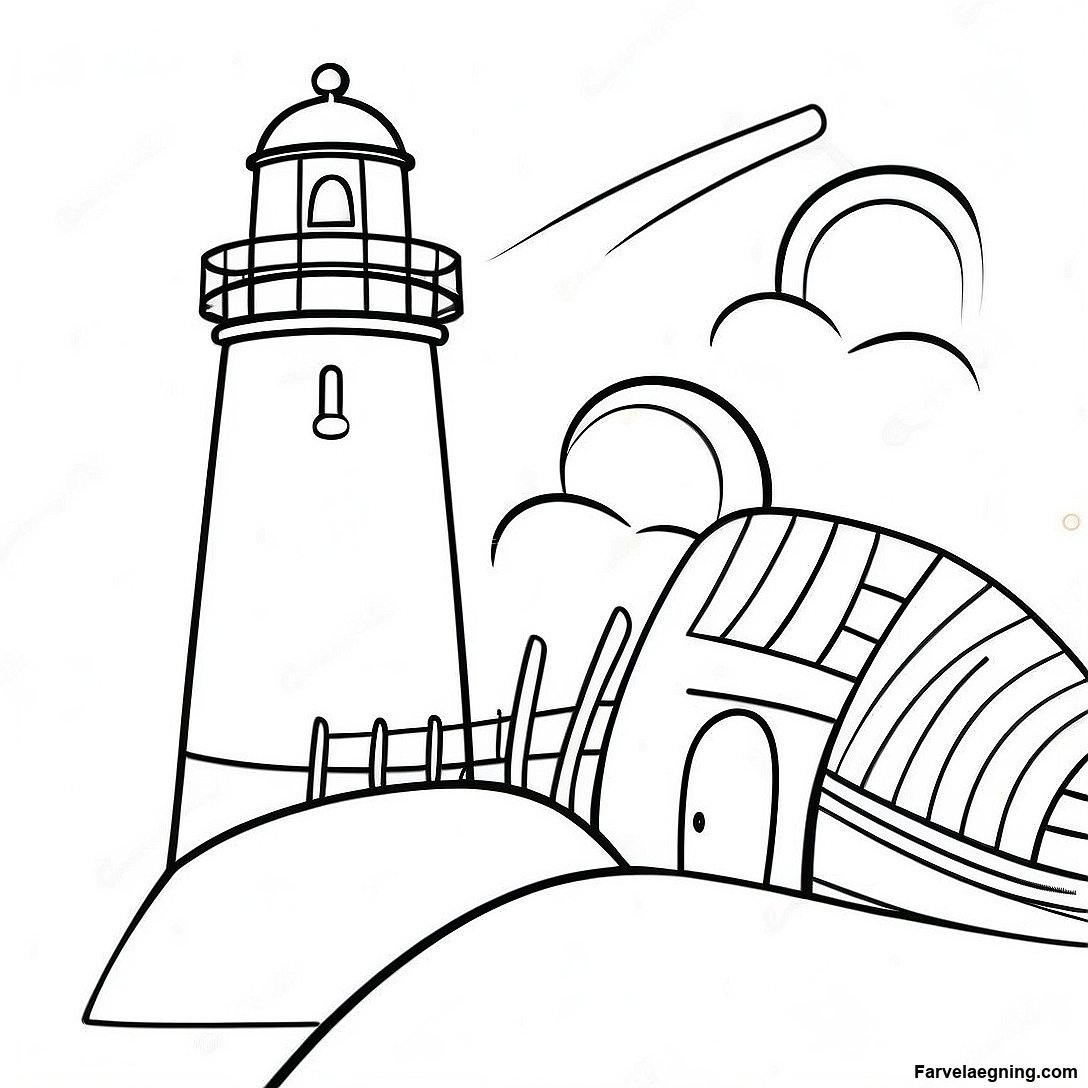Download printbar PDF af Venligt Fyrtårn Med Et Smilende Ansigt Farvelægningsside