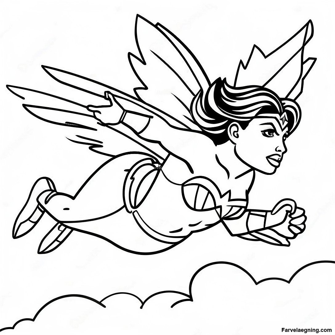 Wonder Woman Flyvende Gennem Himlen Farvelaegningsside