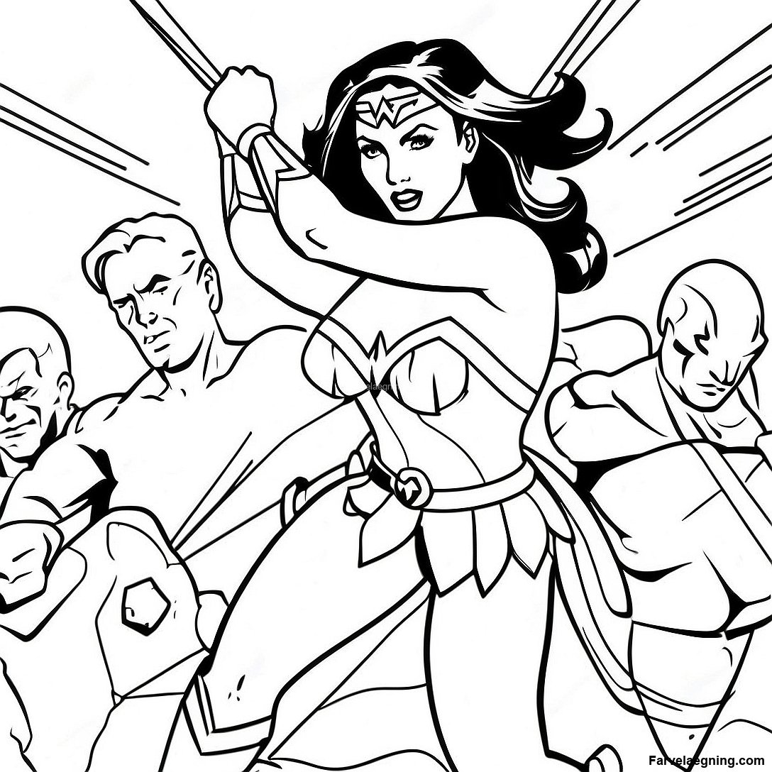 Wonder Woman Kæmper Mod Skurke Farvelægningsside